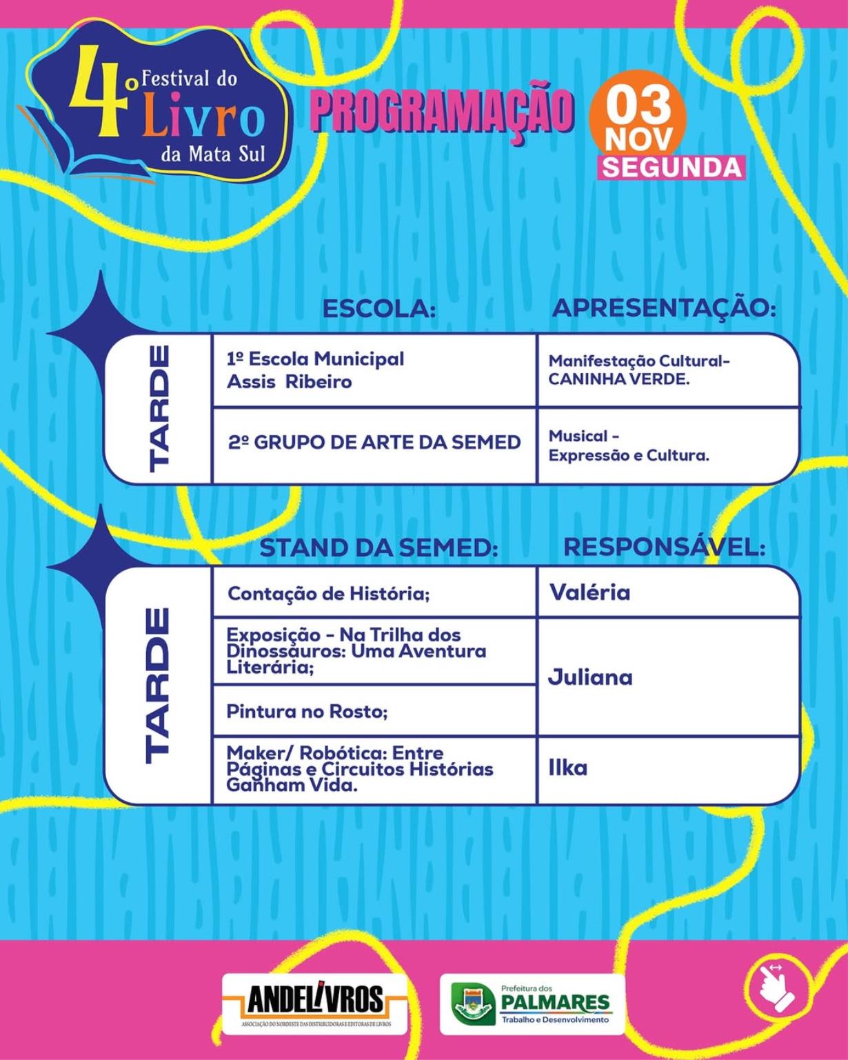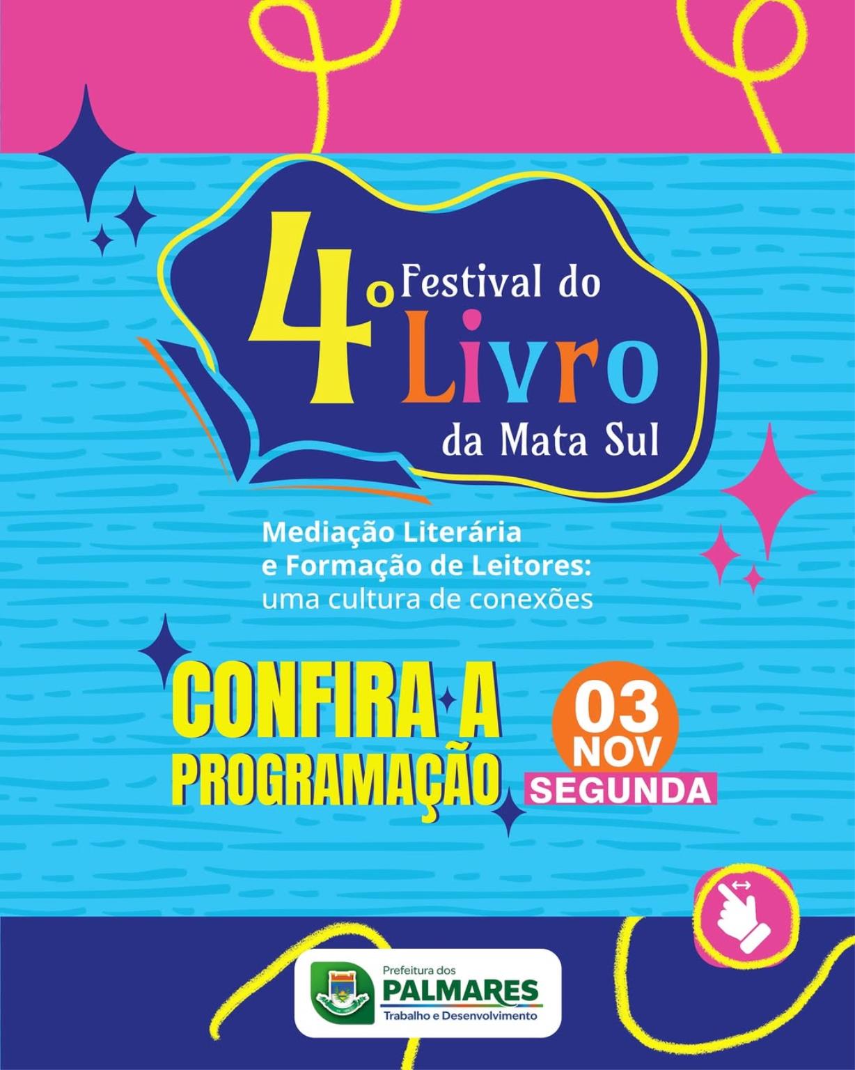 Fica ligado na programação da Feira do Livro e vem viver essa experiência com a gente! Prefeitura dos Palmares - Trabalho e Desenvolvimento. 💜💚💜