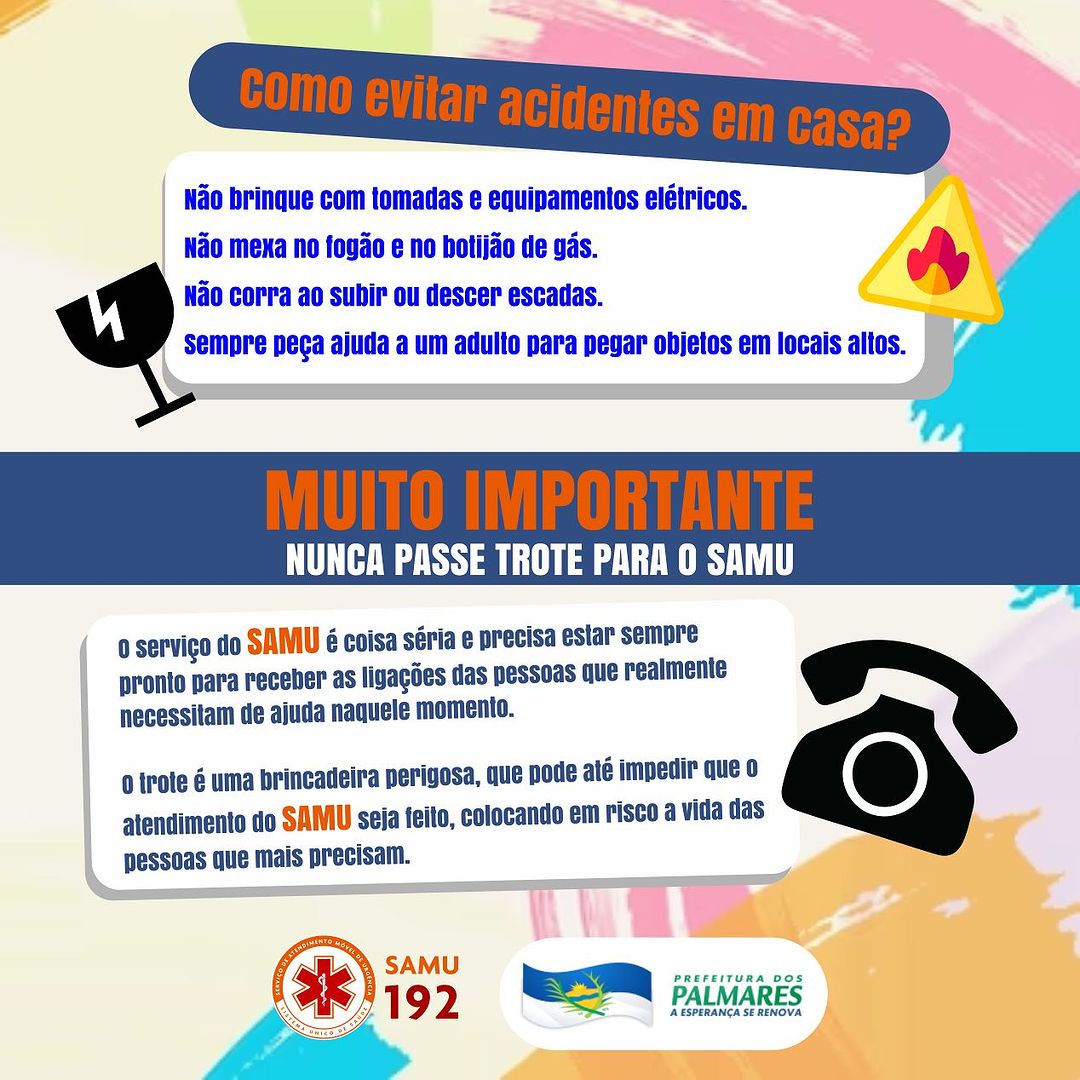 Juntos, cuidamos da saúde e do bem-estar de nossa população, em caso de acidentes ligue 192, fique calmo, informe direitinho como aconteceu, nunca mexa na vítima e aguarde a Ambulância chegar. ⚠️📞