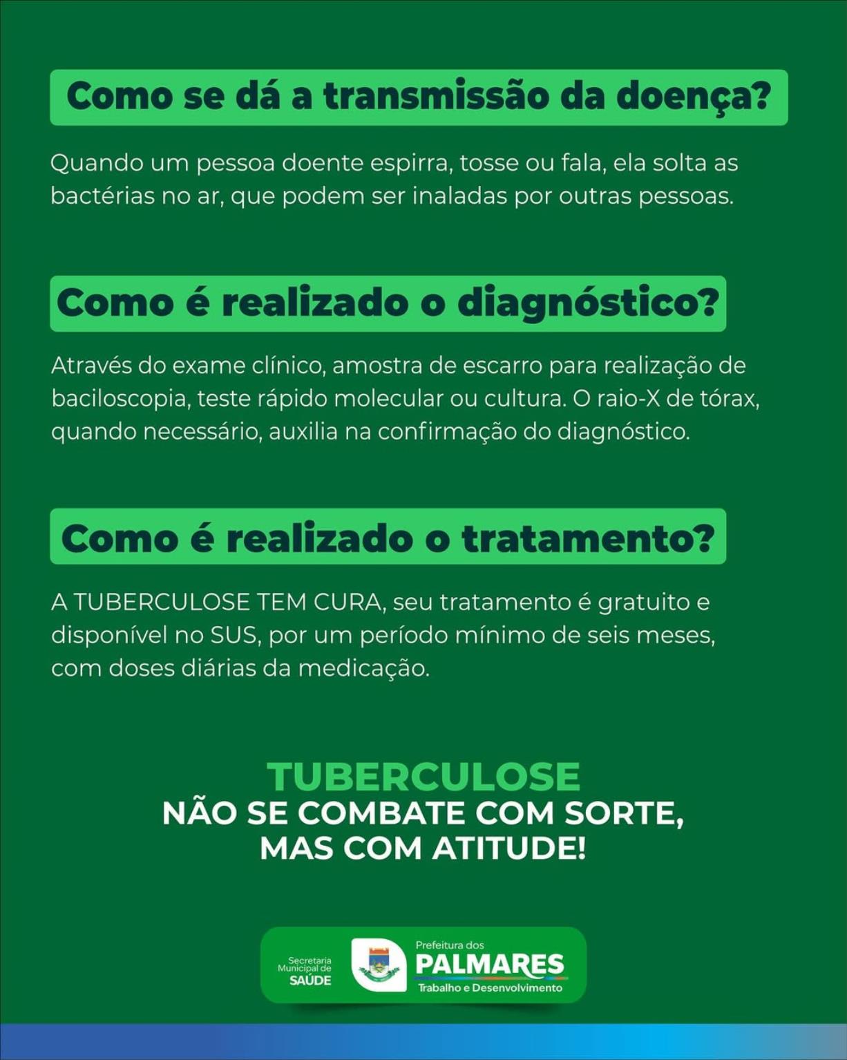 A tuberculose é uma doença infecciosa que tem cura e tratamento gratuito pelo SUS.