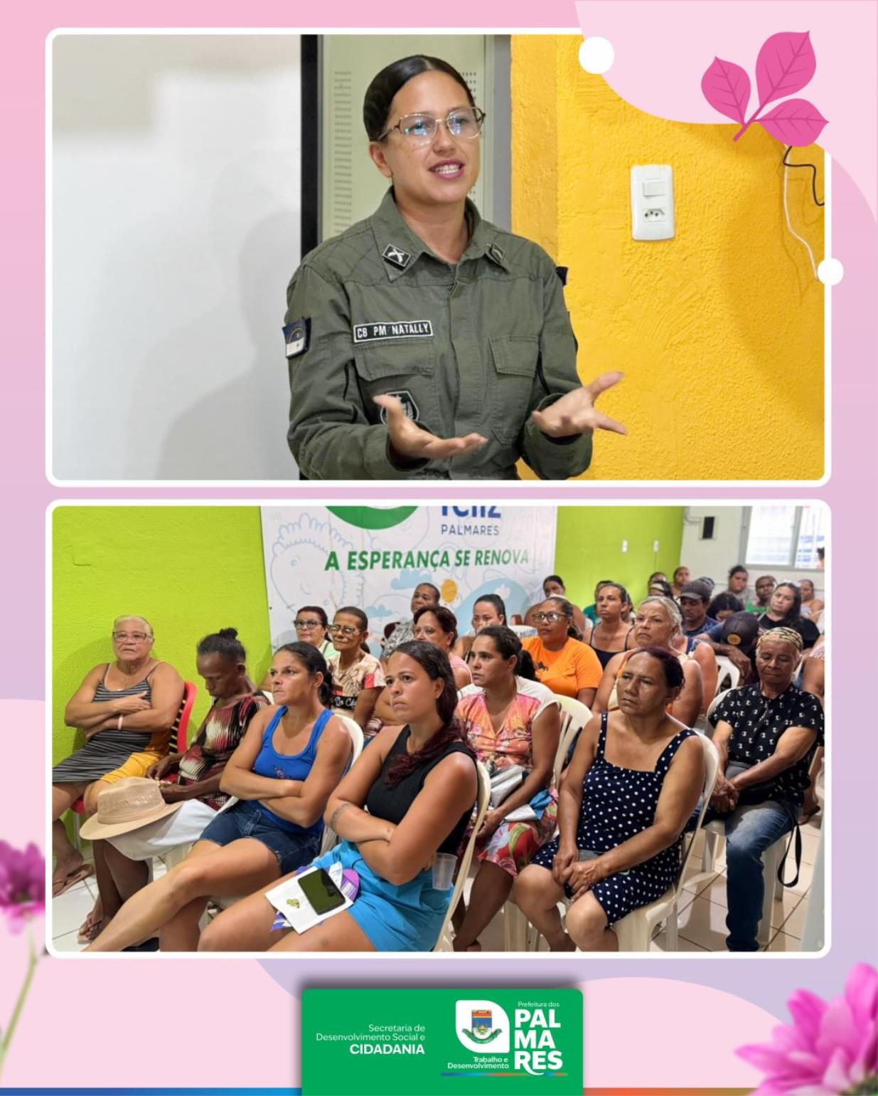 Com a participação especial da palestrante Cabo Natally, vivenciamos um espaço de diálogo, aprendizado e fortalecimento da autoestima feminina.