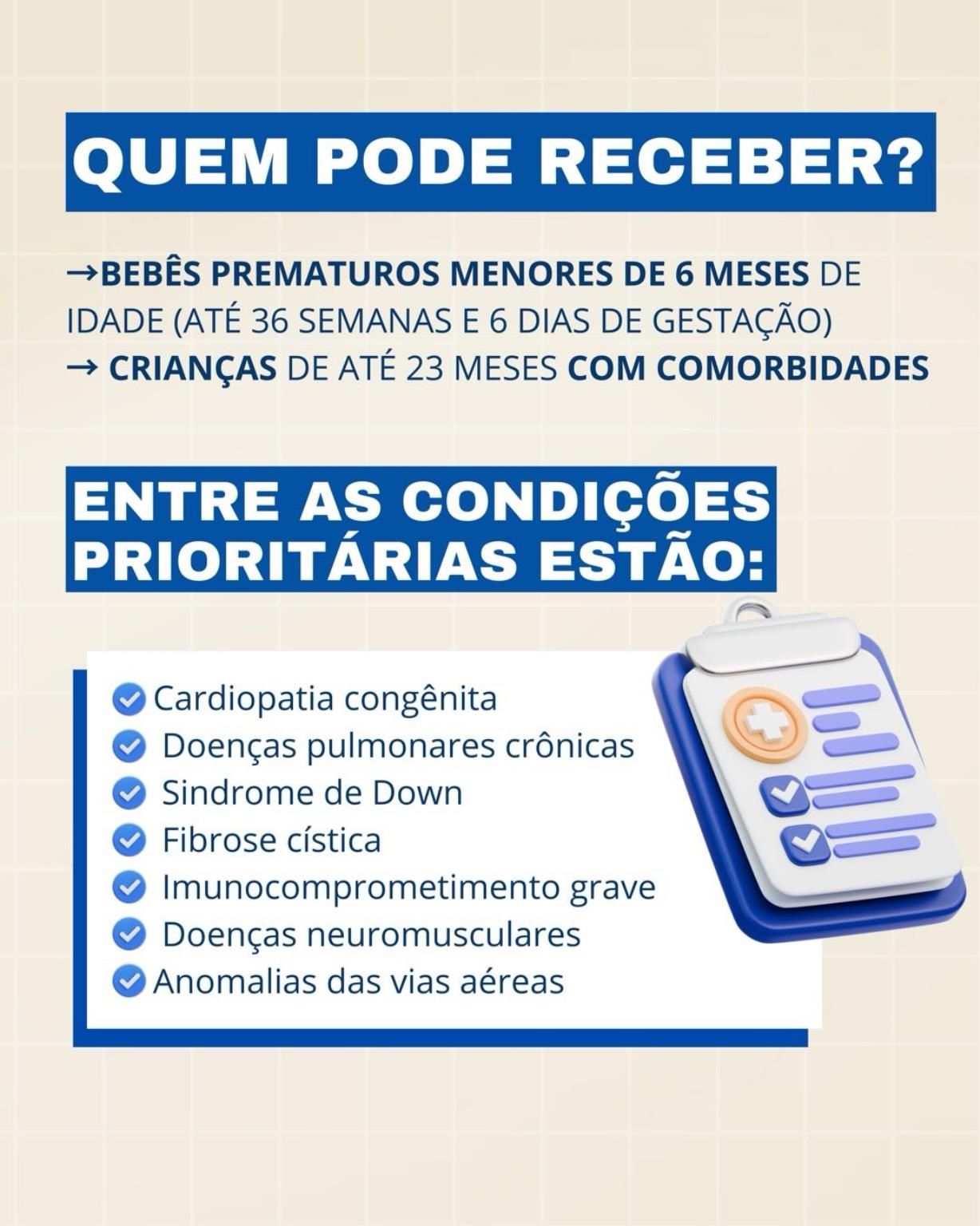 ✅Bebês prematuros menores de 6 meses (até 36 semanas e 6 dias de gestação);