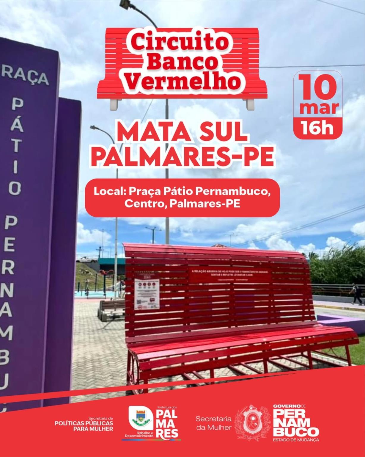 O Circuito Banco Vermelho chega a Palmares com um importante momento de conscientização e mobilização pelo fim da violência contra a mulher.