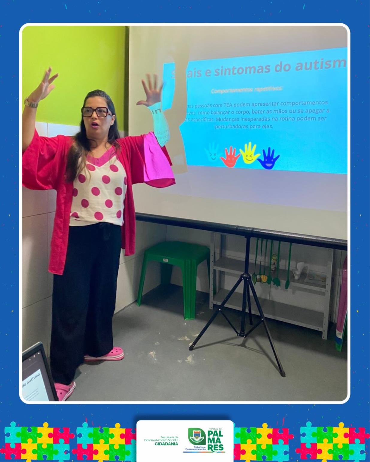 A palestra foi conduzida pela psicóloga Roberta Loureiro, trazendo reflexões importantes sobre o TEA, fortalecendo o cuidado, o respeito e a inclusão.