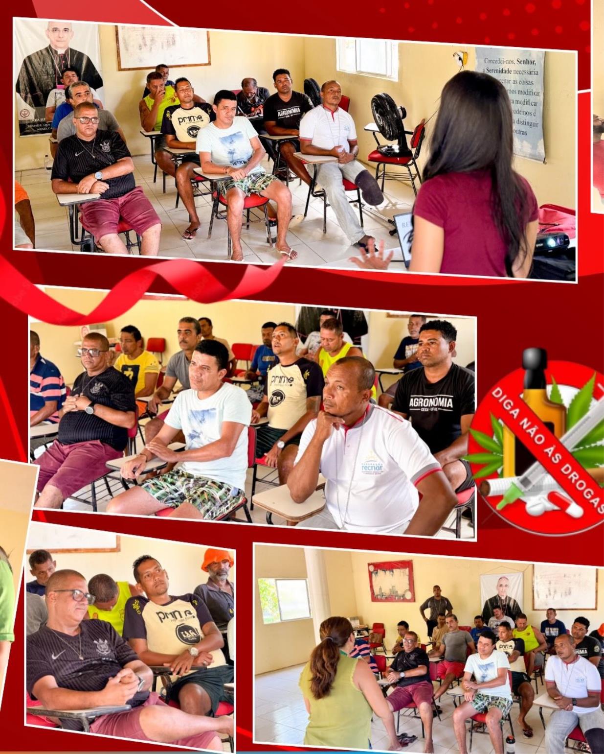 Palestra realizada na comunidade Nova Jericó para homens em tratamento da dependência do álcool, dentro da campanha Fevereiro Vermelho.