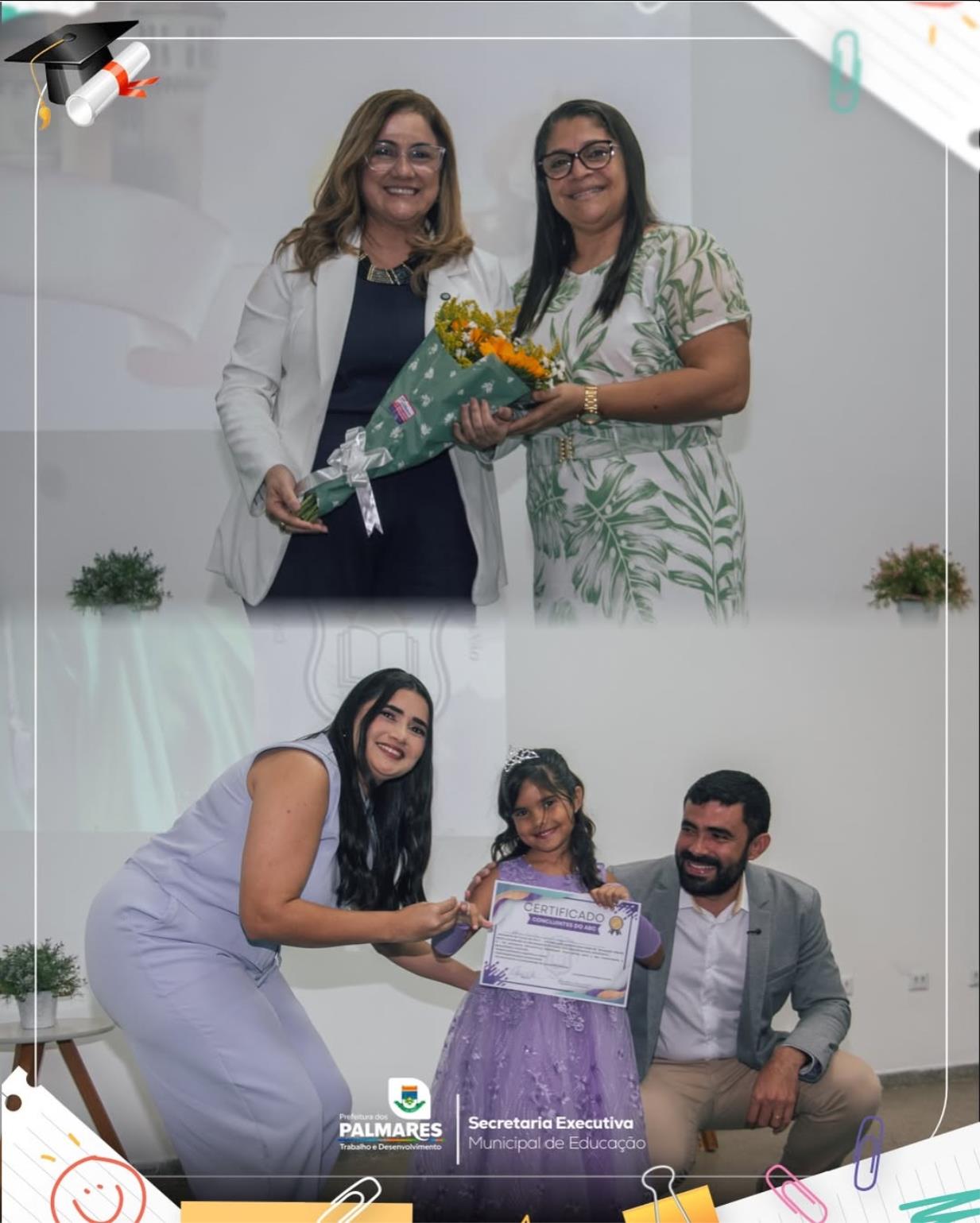 Durante o evento, foram realizadas homenagens especiais, com destaque para a Madrinha da Turma e Gestora Licenciada, Márcia Regina Alcântara, além da Secretária Municipal de Educação, professora Elizângela Neves, pelo apoio e compromisso com a educação infantil.